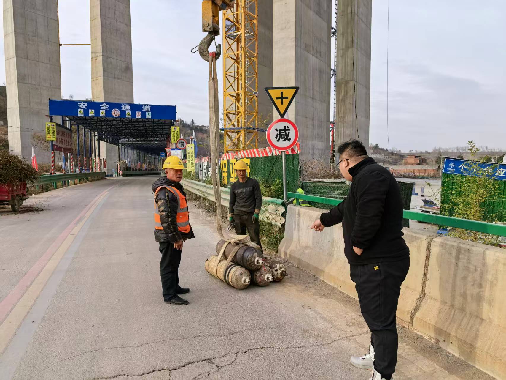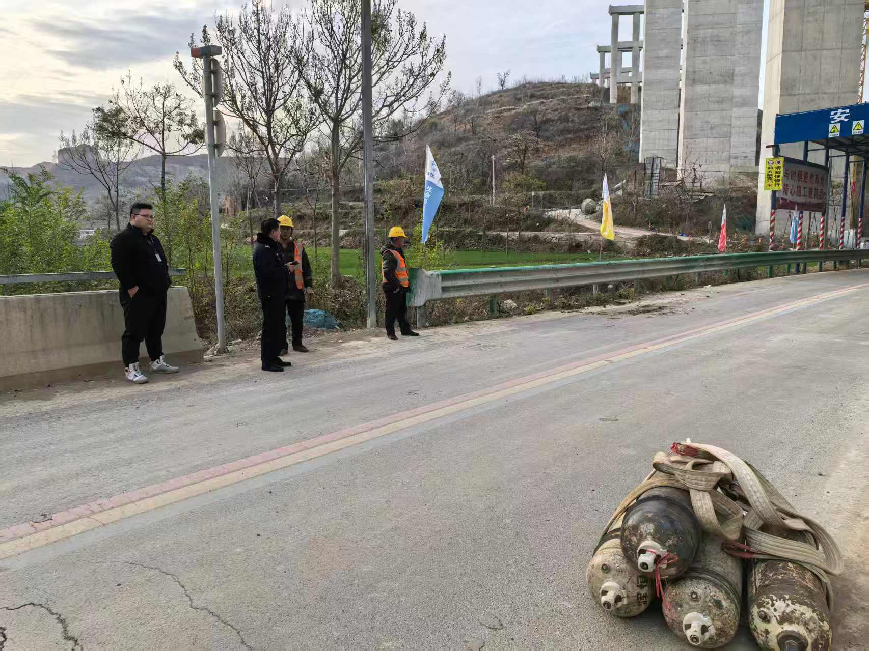 应急办联合派出所对郑洛高速工地违规施工问题进行现场整改。