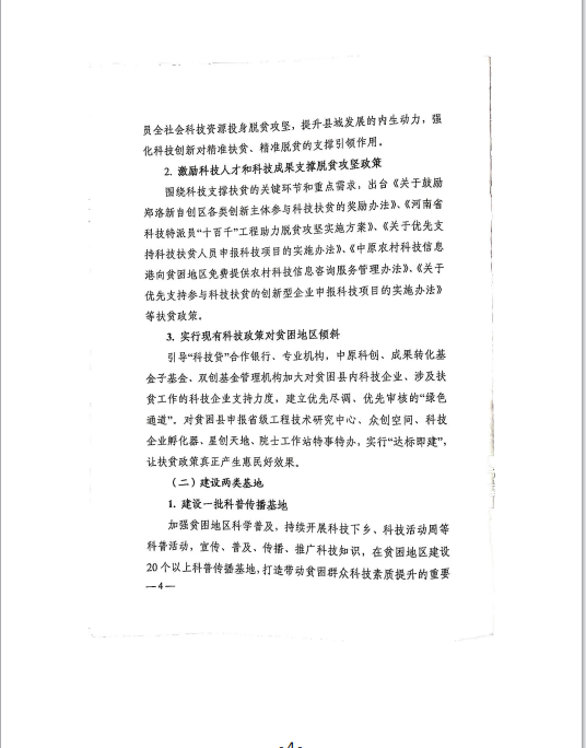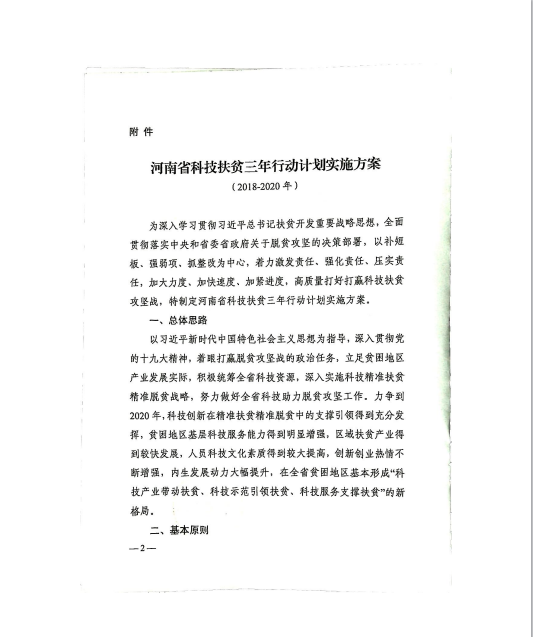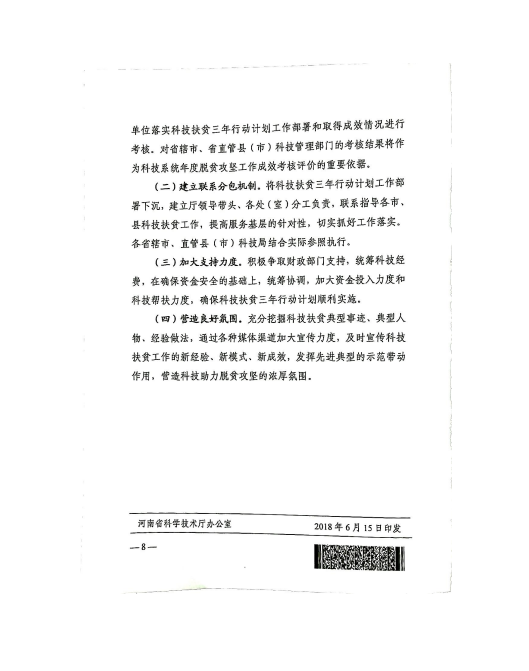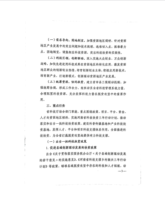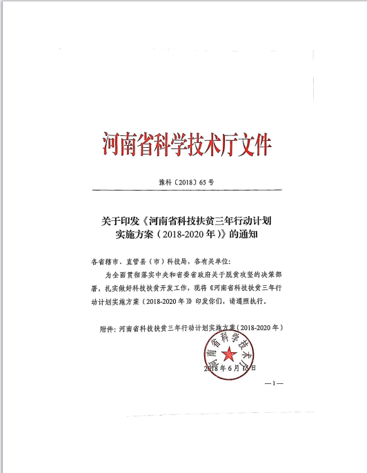 关于印发《河南省科技扶贫三年行动计划实施方案(2018-2020年)》的通知 豫科〔2018〕65号